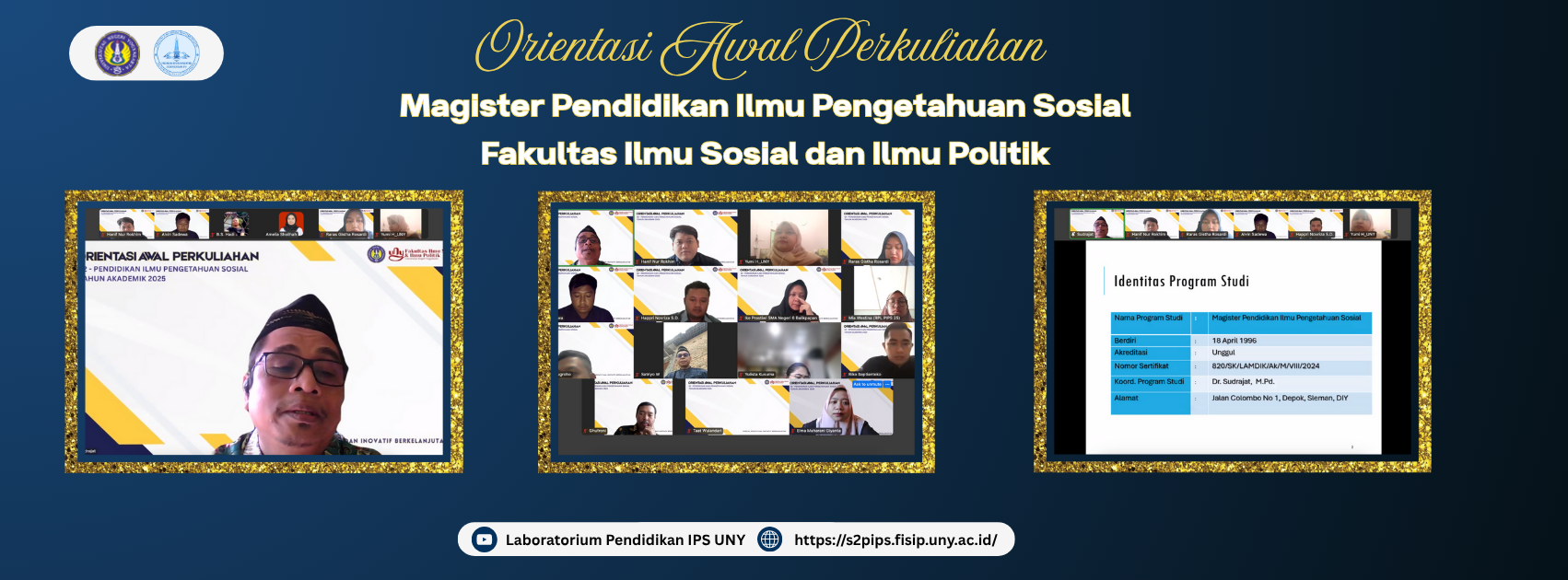 Program Studi Magister Pendidikan Ilmu Pengetahuan Sosial (IPS), Fakultas Ilmu Sosial dan Ilmu Politik (FISIP) Universitas Negeri Yogyakarta (UNY) menyelenggarakan kegiatan Orientasi Awal Perkuliahan Semester Gasal Tahun Akademik 2025/2026 pada Sabtu, 9 Agustus 2025. Kegiatan ini berlangsung secara daring melalui platform Zoom Meeting dan diikuti oleh mahasiswa Magister Pendidikan IPS, serta para dosen pengampu mata kuliah.